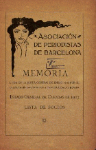| Du (1914-1915, 1918, 1921-1923) Memoria leída en la Junta General de ... / | Du (1916-1918) Memorias | Du (1916-1918) Boletín de la Asociación de Periodistas de Barcelona | Du (1917, 1926-1929) Memoria de la Asociación de Periodistas de Barcelona | Du (1918-1926) Memoria de los trabajos realizados por el Consejo Directivo durante el año ... | Du 1/92 Josep Pla | Du (1922-1932) Associació de Periodistes de Barcelona : |